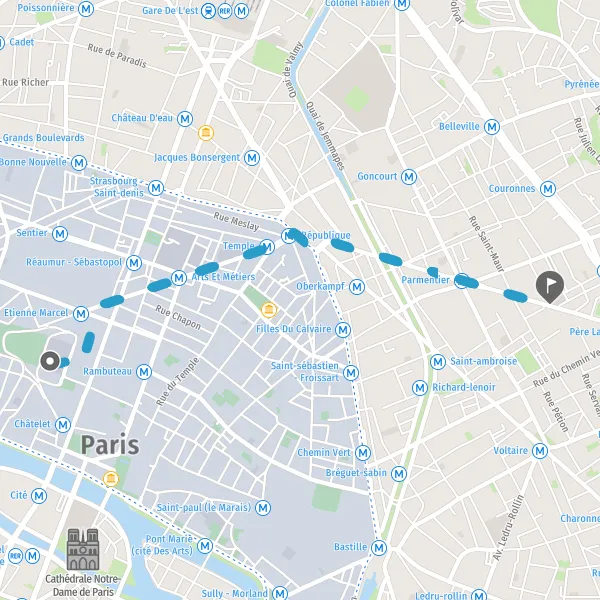 Itinéraire en pieton de Châtelet Les Halles - 75001 Paris à Rue Saint-maur - 90 Avenue de la République, 75011 Paris