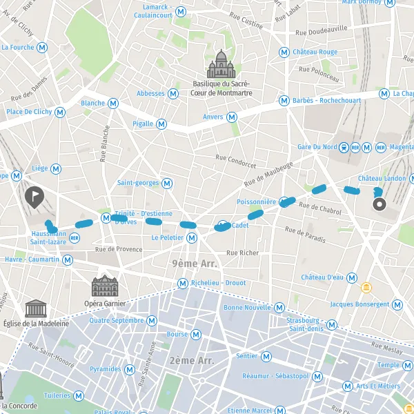 • Continuer Rue de Châteaudun sur 600 mètres