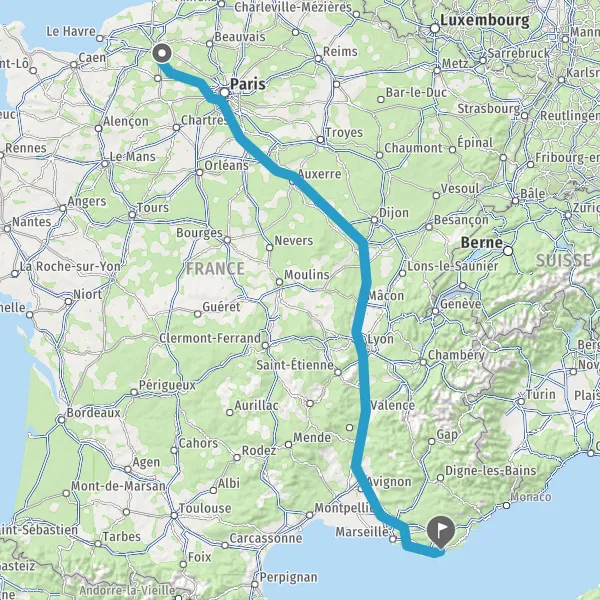 Prendre à droite et rejoindre A13 E5. Continuer sur 75 kilomètres