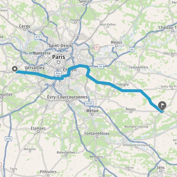 Prendre à droite et rejoindre N104 (La Francilienne). Continuer sur 6,5 kilomètres