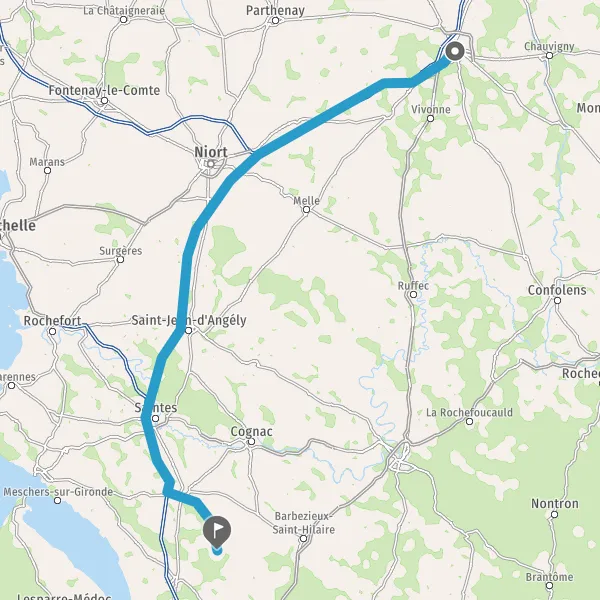Au rond-point, prendre la 3ème sortie sur D732 (Route de Gémonzac) et continuer sur 2,7 kilomètres