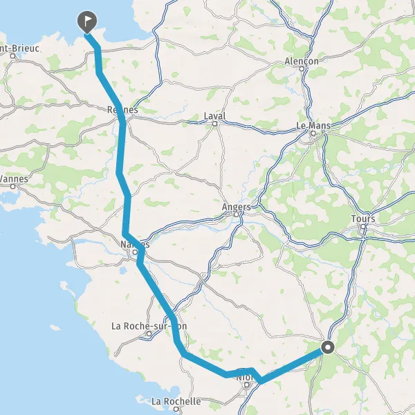 Prendre à droite et rejoindre A83. Continuer sur 150 kilomètres
