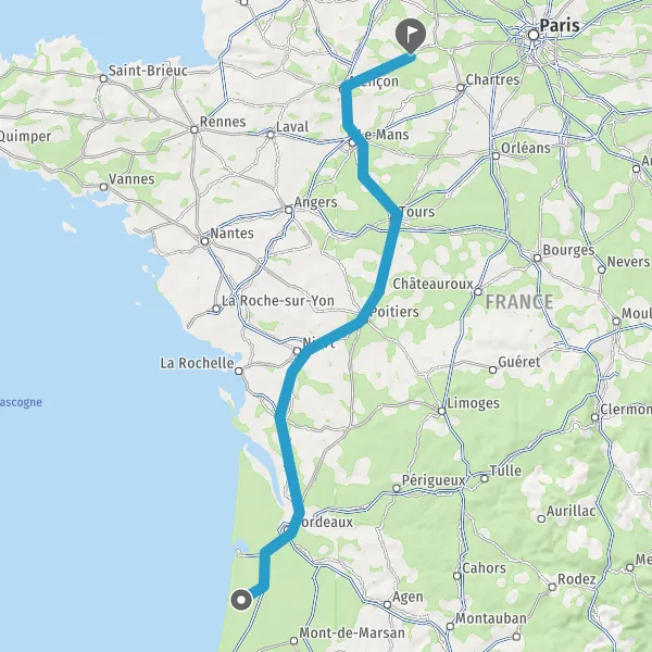 Continuer E5 (L'Aquitaine) sur 328 kilomètres