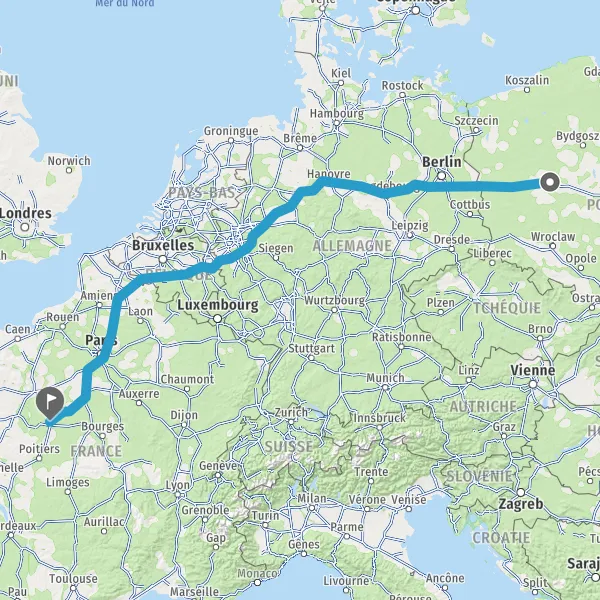 Prendre à droite et rejoindre A2 S5 E30 E261 E261 S11. Continuer sur 164 kilomètres