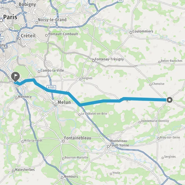Tourner légèrement à droite sur D408 (Route de Nangis) et continuer sur 1 kilomètre
