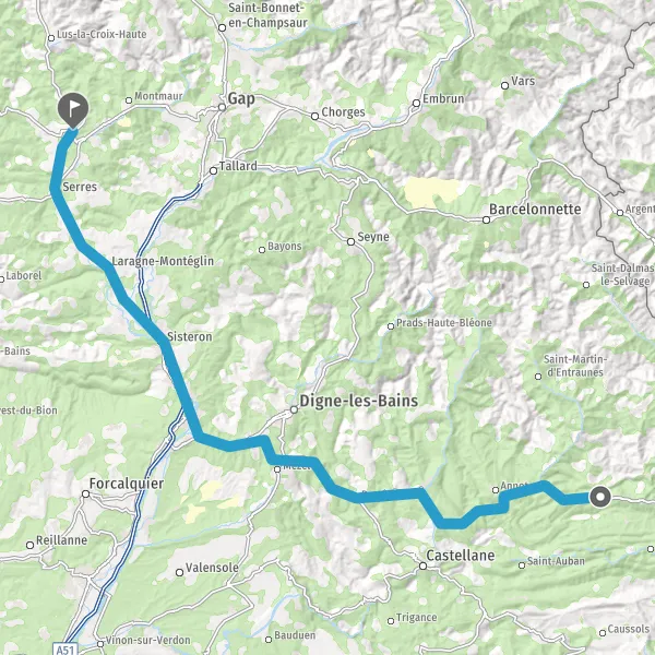 Tourner à droite sur N85 (Route de Digne) et continuer sur 18 kilomètres
