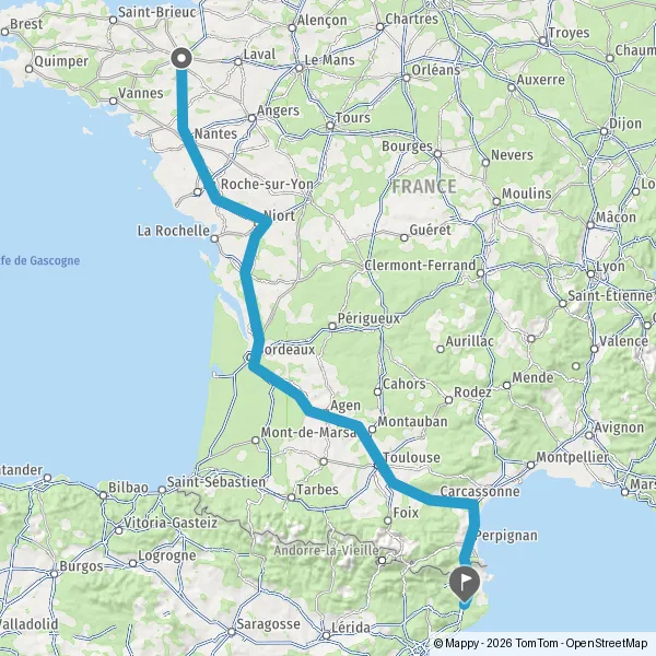 Prendre à droite et rejoindre A83. Continuer sur 150 kilomètres