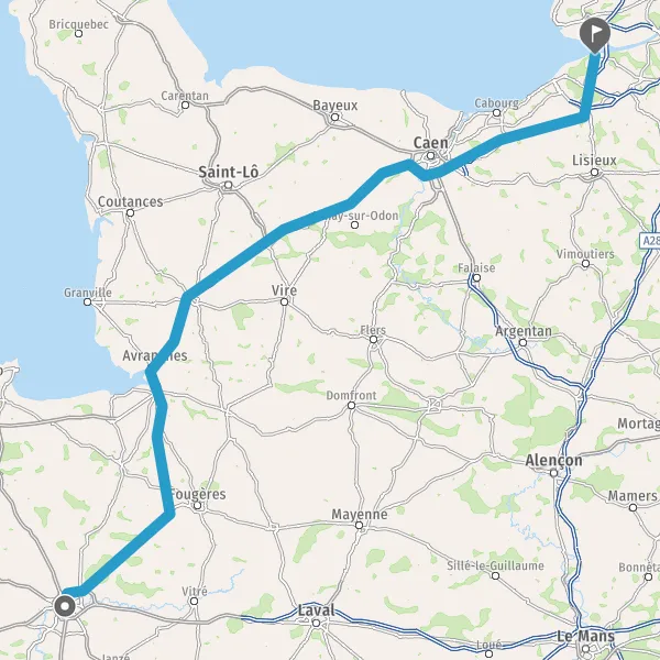 Prendre à droite et rejoindre A84 E3. Continuer sur 166 kilomètres