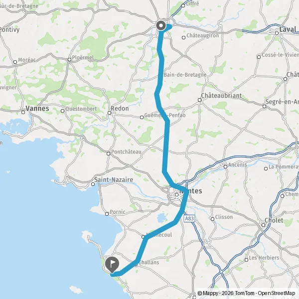 Prendre à droite et rejoindre A83. Continuer sur 3,8 kilomètres