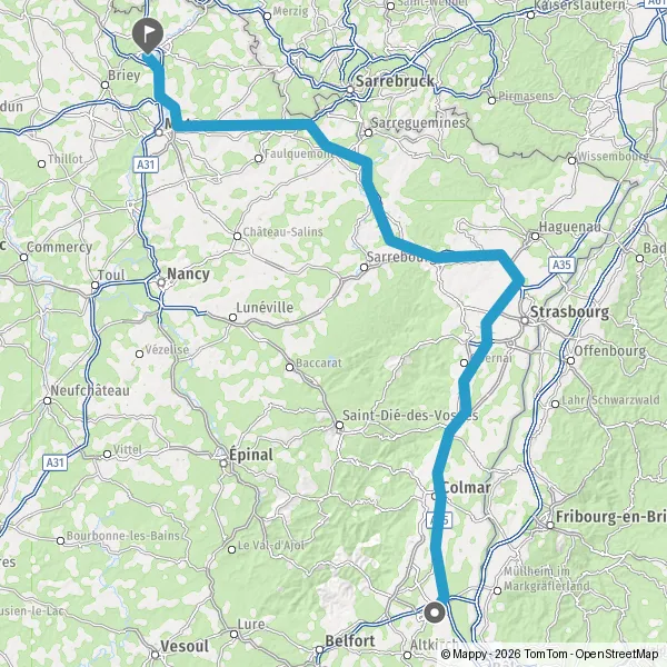 Payer 5,40 € (Péage Ittenheim) Prendre un ticket (Péage Schwindratzheim) Payer 10,40 € (Péage Loupershouse) Payer 4,80 € (Péage Saint-Avold) 97 km