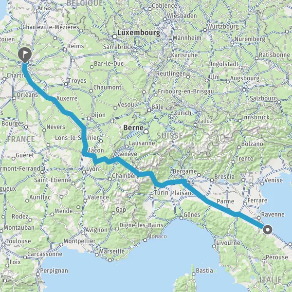 Entrer en France et prendre N205 E25 (Tunnel du Mont-Blanc) sur 11 kilomètres