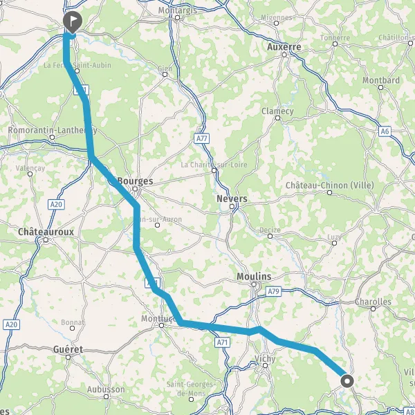 Prendre à droite et rejoindre A71. Continuer sur 218 kilomètres