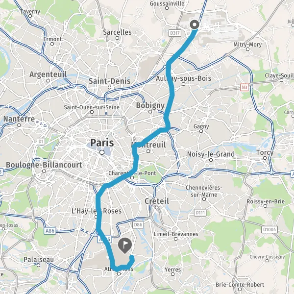 Prendre à droite et rejoindre A86. Continuer sur 3,3 kilomètres