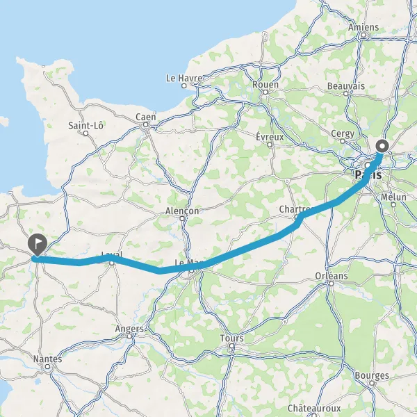 Prendre à droite et rejoindre A11 E50. Continuer sur 147 kilomètres