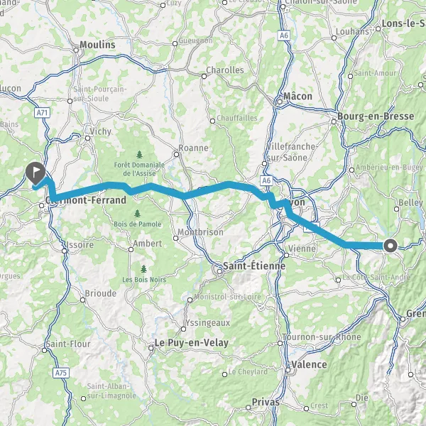 Continuer et rejoindre A89 E70. Continuer sur 83 kilomètres