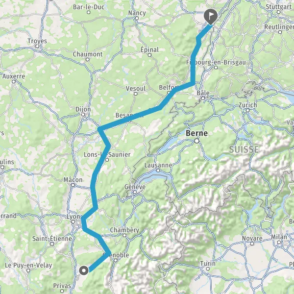 Prendre à droite et rejoindre A36 E60. Continuer sur 185 kilomètres
