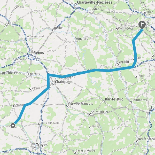 Prendre à droite et rejoindre A4 E50. Continuer sur 101 kilomètres