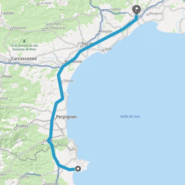 Trajet de Roses (17480) à Montpellier (34000) en voiture