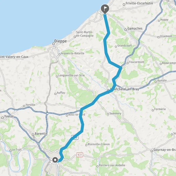 Au rond-point, prendre la 1ère sortie sur D925 D54 (Route de Dieppe) et continuer sur 3,6 kilomètres