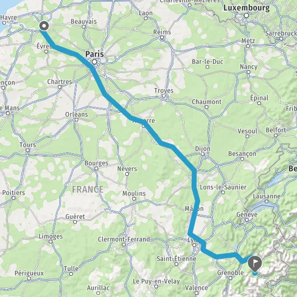 Prendre à droite et rejoindre A43 E70. Continuer sur 38 kilomètres