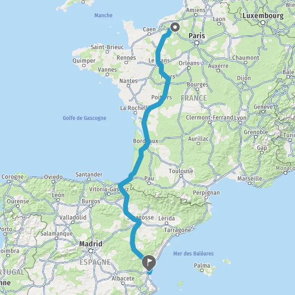 Prendre à droite et rejoindre A63. Continuer sur 205 kilomètres