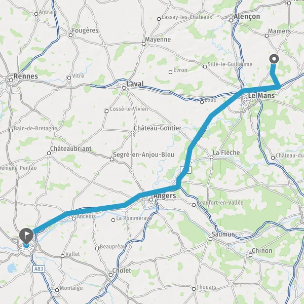 Continuer A11 E50 sur 25 kilomètres