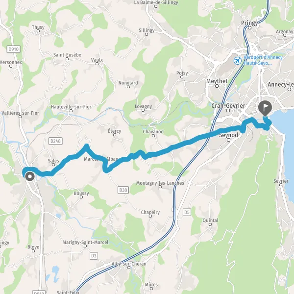 Au rond-point, prendre la 2ème sortie sur D16 (Route d'Annecy) et continuer sur 3 kilomètres