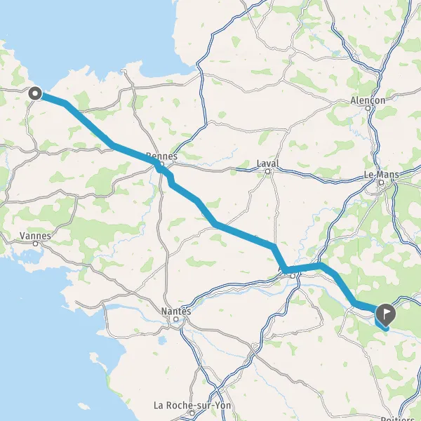 Prendre à droite et rejoindre A85. Continuer sur 54 kilomètres