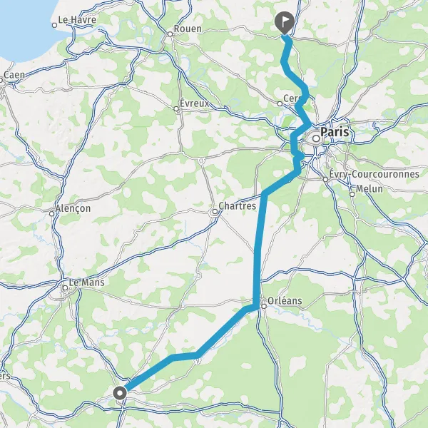 Prendre à droite et rejoindre A10 E60 E5. Continuer sur 105 kilomètres
