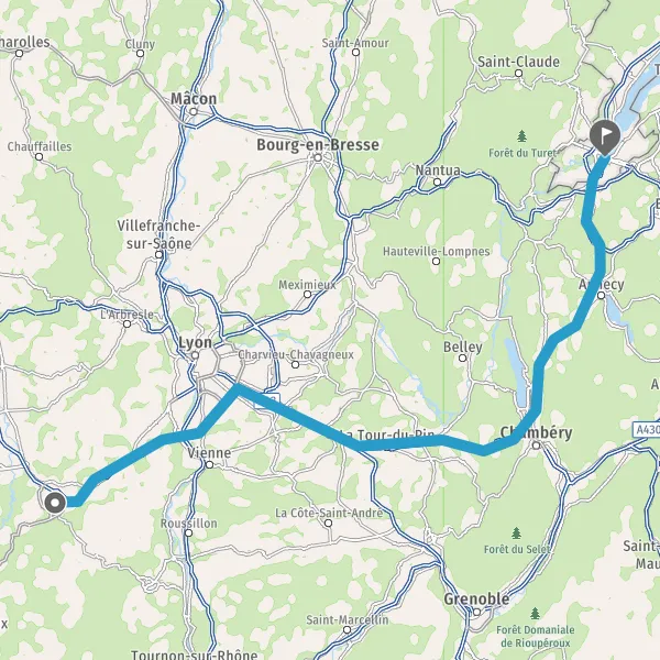 Autoroute Blanche-Tunnel de Chamoise Autoroute Blanche-Tunnel de Saint-Germain Autoroute Blanche-Tunnel de Châtillon Autoroute Blanche-Tunnel du Vuache Payer 18,90 € (Péage Viry) 119 km