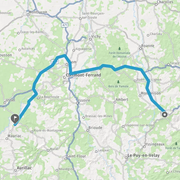 Prendre à droite et rejoindre A89 A71 E11 E70. Continuer sur 20 kilomètres