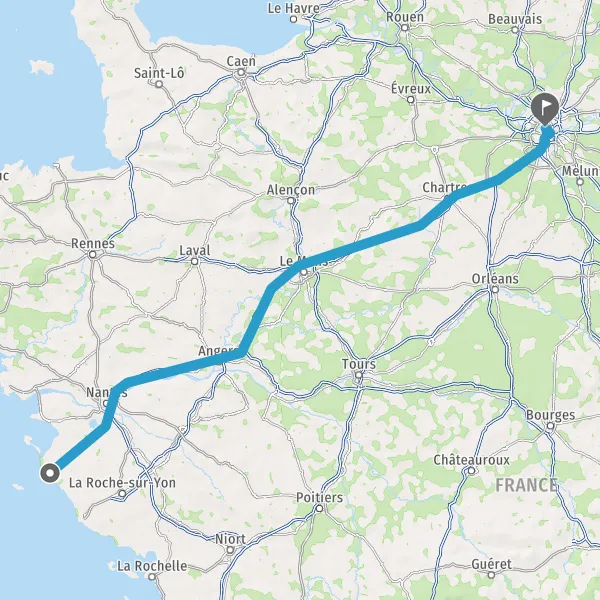 Continuer A11 E60 E501 sur 236 kilomètres