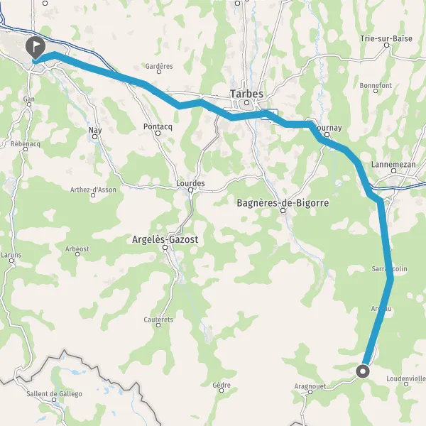Prendre à droite et rejoindre A64 E80. Continuer sur 40 kilomètres