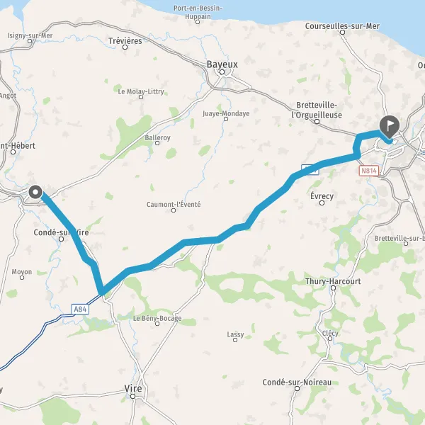 N174RennesLe Mont-Saint-MichelCaenVilledieu-les-PoêlesVireTorigni-sur-VireCondé-sur-Vire