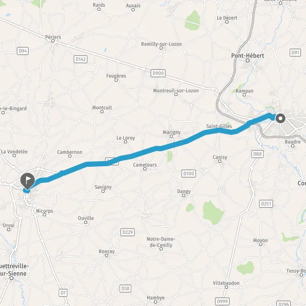Tourner légèrement à droite sur D900 (Route de Coutances) et continuer sur 220 mètres