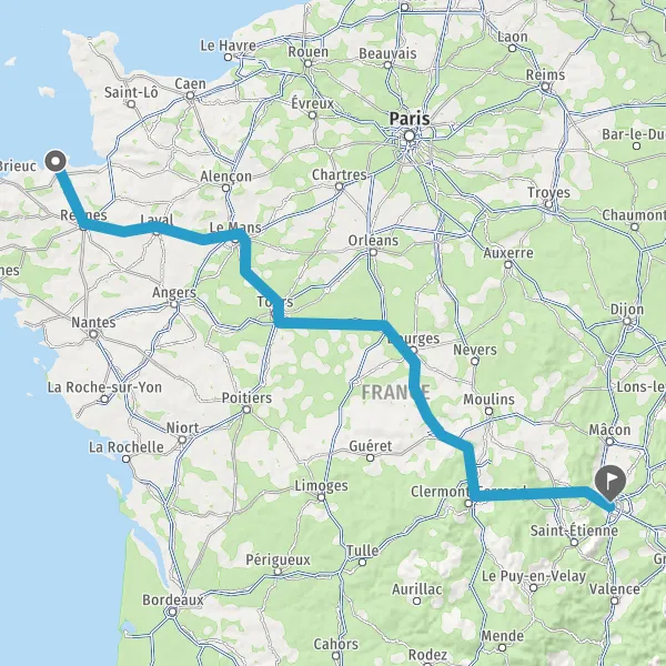 Prendre à droite et rejoindre A85 E604. Continuer sur 106 kilomètres