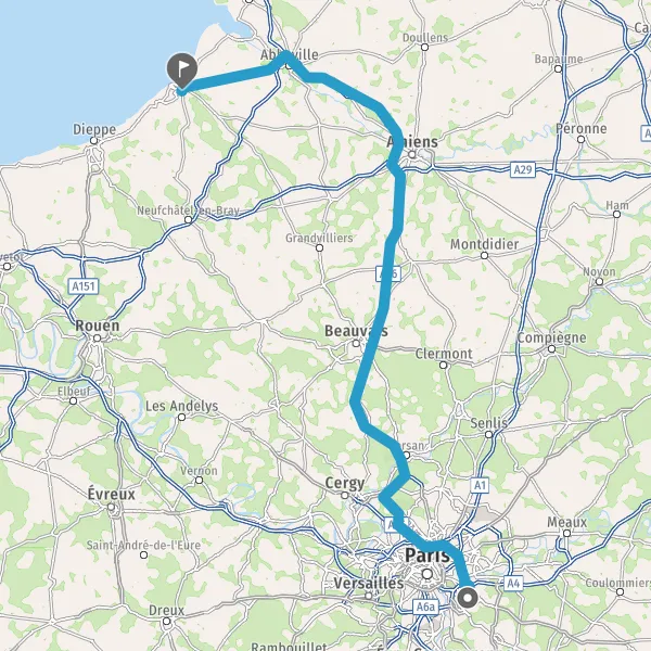 Prendre à droite et rejoindre A16. Continuer sur 153 kilomètres