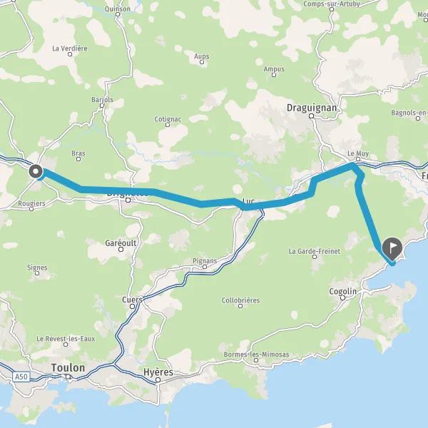 Tourner à droite sur D125 (Route de Sainte-Maxime) et continuer sur 17 kilomètres