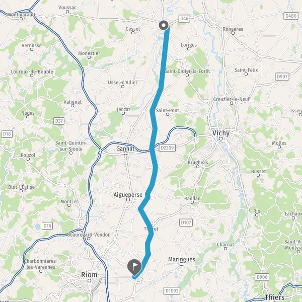 Au rond-point, prendre la 2ème sortie sur D2009 (Route de Gannat) et continuer sur 3,7 kilomètres