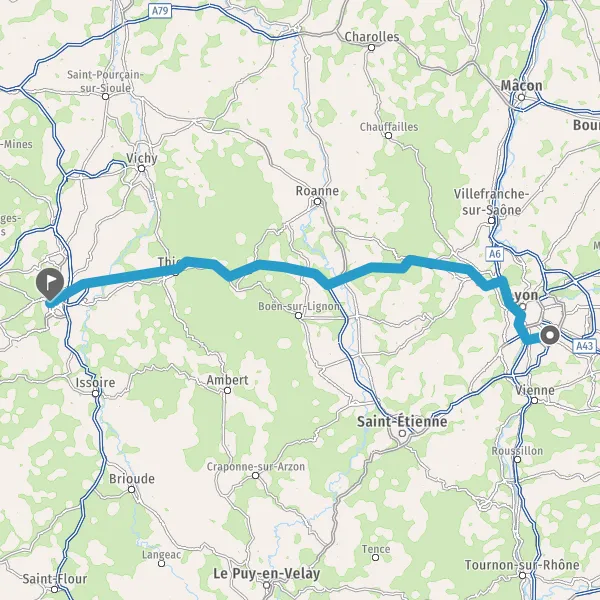 Continuer et rejoindre A89 E70. Continuer sur 77 kilomètres