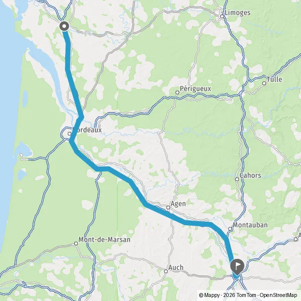 | Distance en voiture | 332 km à 407 km |