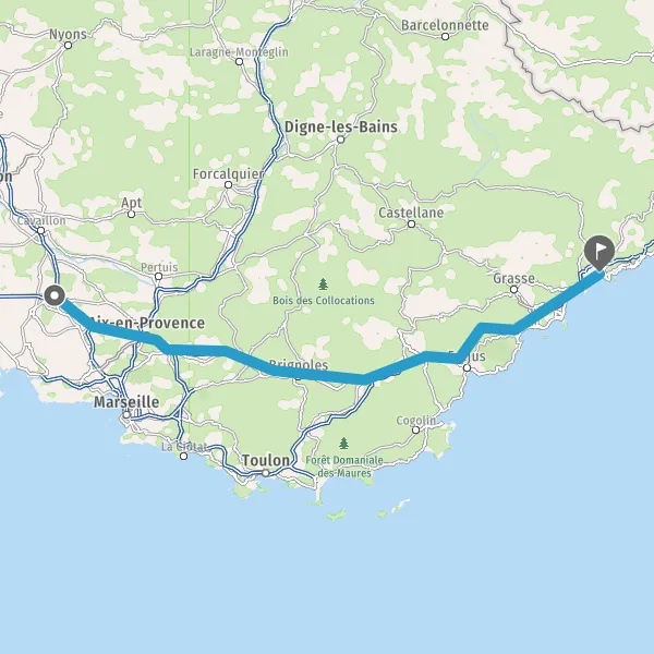 Avec le mode voiture, vous pouvez configurer vos options (type de véhicule, autoroute ou non, péage ou non, distance la plus courte), tout en ayant accès aux infos de circulation grâce à notre service d'info-trafic en temps réel. Ainsi faites des économies sur le coût ou la durée de votre voyage, en trouvant le trajet Salon-de-Provence Nice adapté à vos besoins.