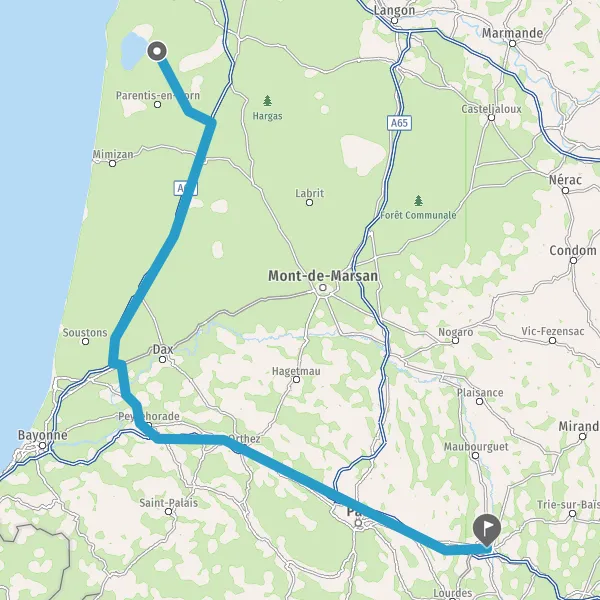 Prendre à droite et rejoindre D824 (Route de Bayonne). Continuer sur 3,8 kilomètres