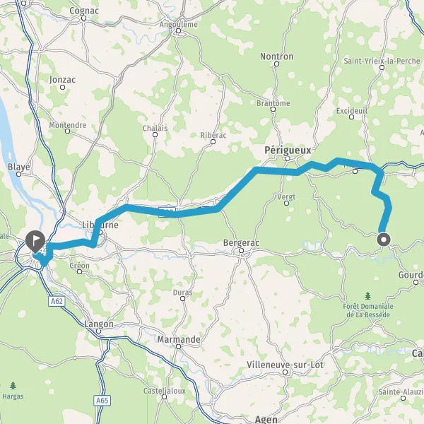 Payer 4,60 € (Péage Thenon) Prendre un ticket (Péage Mussidan Barriere) Payer 11,60 € (Péage Arveyres) Avenue du Président John Fitzgerald Kennedy 37,4 km