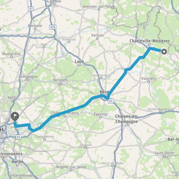 Prendre à droite et rejoindre A4 E50. Continuer sur 90 kilomètres