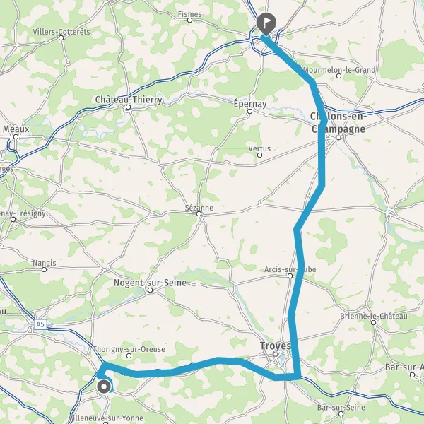 Prendre à droite et rejoindre A5. Continuer sur 70 kilomètres
