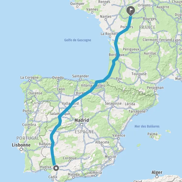 Trajet de Séville (41001) à Tours (37000) en voiture