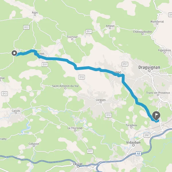 Tourner légèrement à droite sur D557 (Route de Salernes) et continuer sur 7,3 kilomètres
