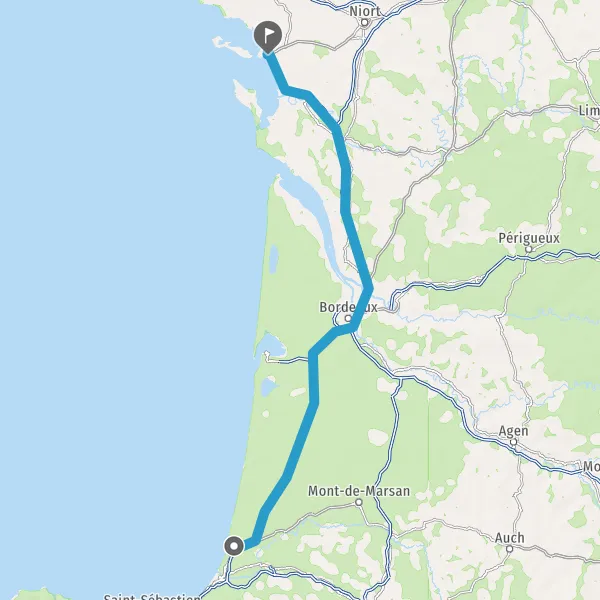 Prendre à gauche et rejoindre A63 E5 E70. Continuer sur 155 kilomètres