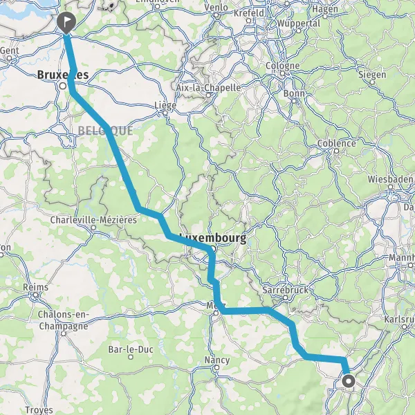 Continuer et rejoindre R0 (Sint-Jansbergsteenweg). Continuer sur 12 kilomètres